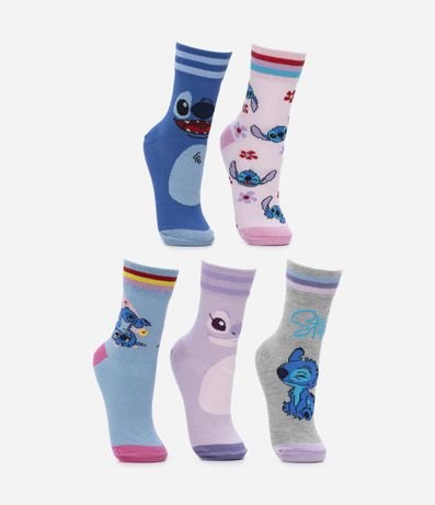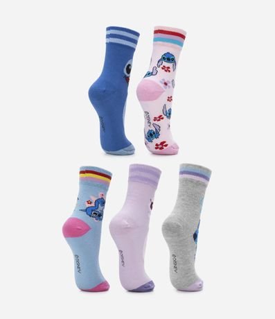 Ref: O kit com 05 pares de meia cano médio infantil, é a escolha perfeita para rechear o guarda-roupa das pequenas de fofura e alegria. Os modelinhos confeccionados em algodão, contam com estampa do Stitch e da Angel, oferecendo muito conforto e estilo para vestir a sua menina.