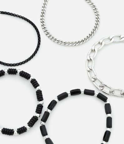 Ref: Proporcionando diferentes produções, o kit com 05 pulseiras de correntes e pedras, é uma opção cheia de estilo para compor um visual mais descolado. Com design moderno, os modelos trazem muita presença aos seus looks.