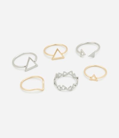 Ref: Kit de bijuteria feminina, com 06 anéis confeccionados em metal e em diferentes formatos de triangulos folheado.