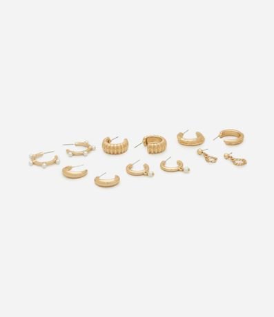 Ref: Kit com 06 pares de brincos confeccionados em metal reciclado. Possui tamanho pequeno, modelo argola e com diferentes formatos.
