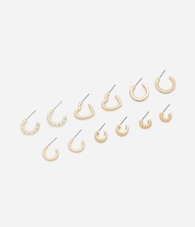 Ref: Kit de brincos argolas com diversos modelos, um par perolado, um par com strass, um par liso, um par em forma de coração, um trançado e tamanhos variados.