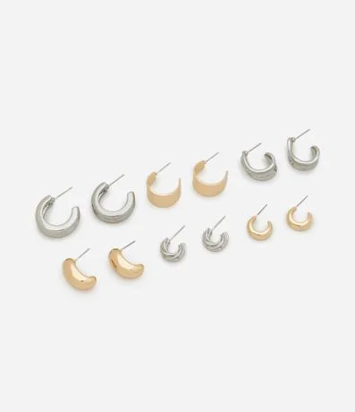 Ref: Kit 06 brincos femininos confeccionado em metal reciclado com argolas diversas e cores variadas, 01 argola torcida, 01 lisa pequena, 01 côncava, 01 achatada, 01 dupla e 01 bold.