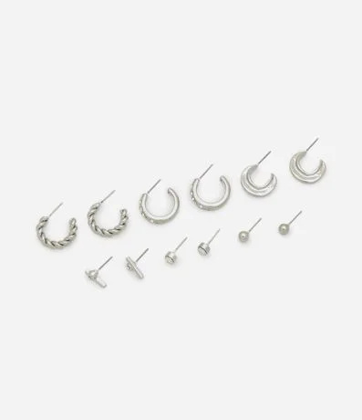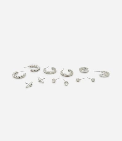 Ref: Kit de brincos femininos composto por um brinco argola torcida, um argola com strass, um argola orgânica acompanhado de um brinco ponto de luz, um palito, um esfera.