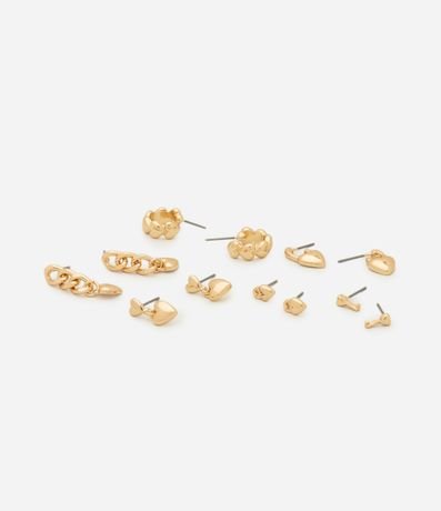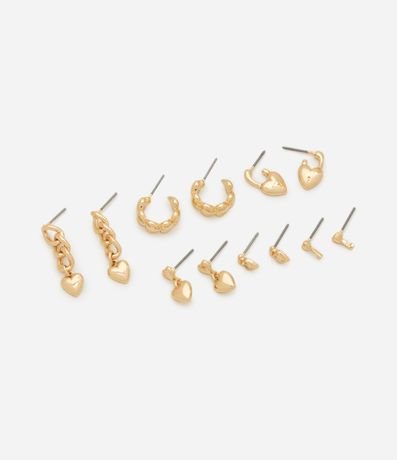 Ref: Kit 06 pares de brincos diversos com detalhes fofos de coração, e formas variadas.