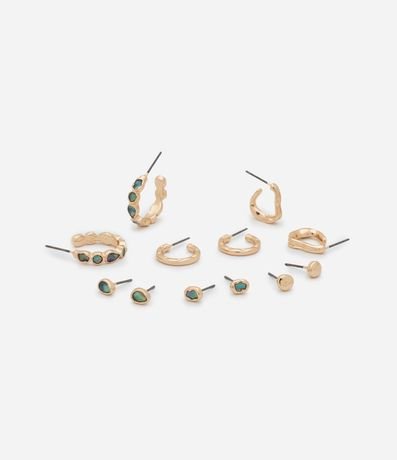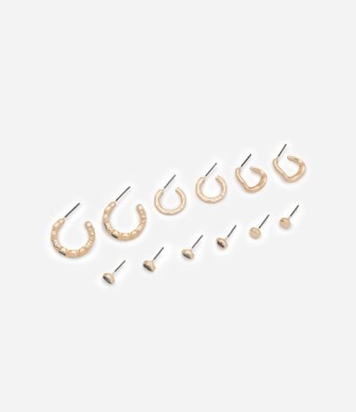 Ref: Kit com 06 brincos femininos, confeccionados em metal, com modelos meia argola e tapa furo.