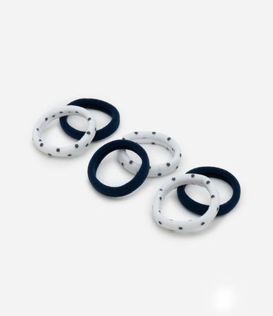 Ref: Kit 06 de elástico de cabelo sem costura com três unidades lisas e três com estampa poá.
