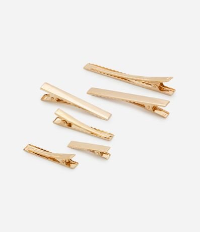 Ref: Kit 06 presilhas de cabelo confeccionadas em metal, formato reto, sem detalhes, e com tamanhos gradativos.