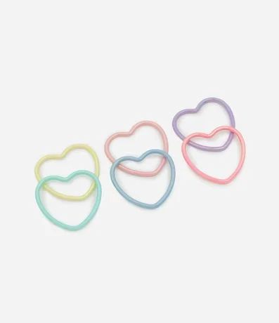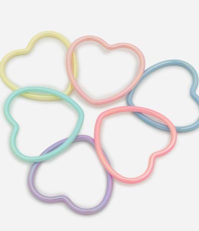 Ref: Kit com 06 pulseiras infantis, em formato de corações, coloridas e holográficas.