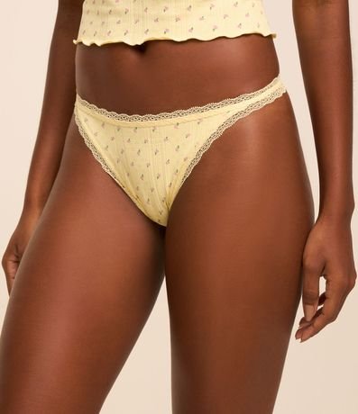 Ref: Kit 2 calcinhas string sem costura com estampa floral e detalhe de renda.