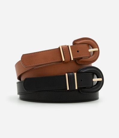 Kit com 2 cintos estilo casual, sem estampa e com fivelas forradas. Combina com diversos looks podendo ser usado no dia a dia, valorizando a cintura e trazendo ainda mais estilo ao visual. Aposte na combinação com jeans e crie produções incríveis!