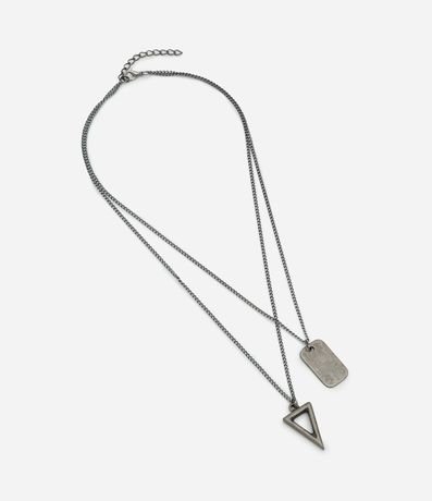 Kit 2 Colares em Corrente de Metal com Pingentes em Formato de Triângulo e Placa Militar