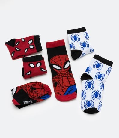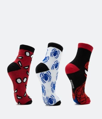 Ref: Kit composto por três pares de meias infantil com cano médio e antiderrapantes. As estampas diferentes, mas com a mesma temática, a de Homem Aranha, os modelos são fofos e divertidos. Sua composição, em algodão, garante conforto e respirabilidade. O formato de kit garante opções diversas e maior quantidade para uma peça que tem costume de sumir no guarda-roupa.