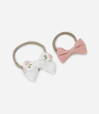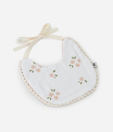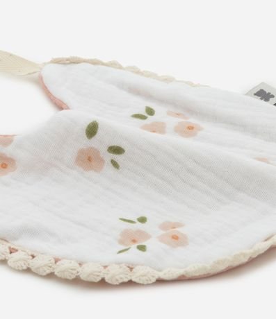 Ref: Kit de acessórios infantis, compostos por 01 babador, com fechamento por amarração, e 02 laços. Ambos confeccionados em algodão mais sustentável e estampa floral.