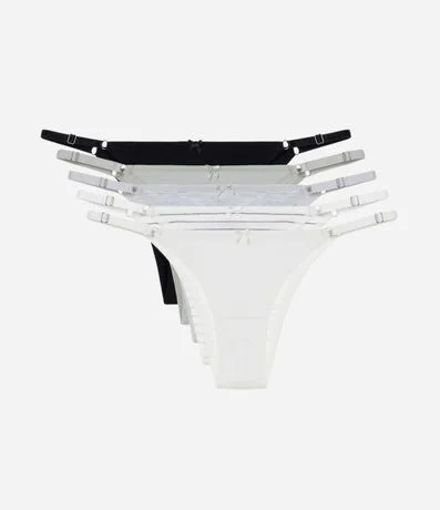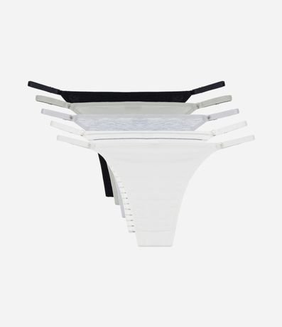 Ref: Kit com cinco calcinhas string em algodão, trazendo conforto e toque macio para o dia a dia. Modelos com detalhes delicados em renda e variações de cores que facilitam a combinação. Peças leves e práticas, confeccionado em algodão de certificado BCI.