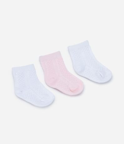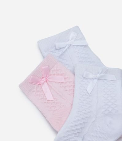 Ref: Kit com 03 meias de bebê textutizadas com lacinho aplicado no cano.