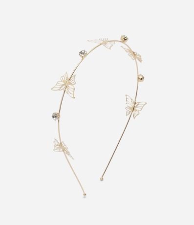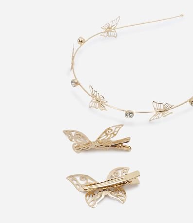 Ref: Kit com tiara fina e duas presilhas médias, todas em metal e com lindo formato de borboletas.