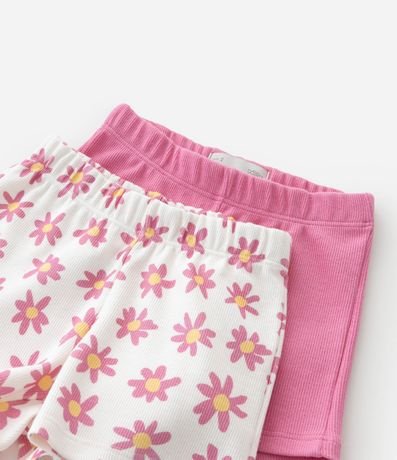 Ref: Kit com dois shorts infantis confeccionados em ribana de algodão certificado BCI e boas práticas ambientais. Um modelo liso e outro com estampa floral divertida. Ambos possuem cós com elástico para ajuste confortável. Perfeitos para looks leves e práticos.