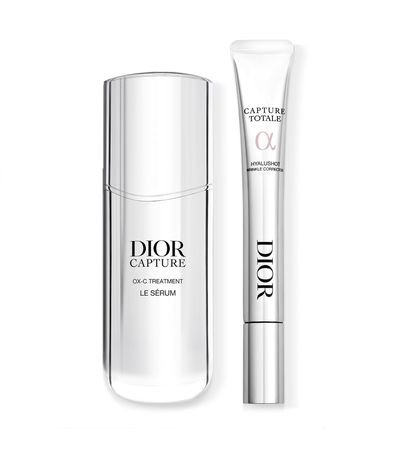 Este sérum facial encapsula o OX-C Treatment, de ação regenerante e preenchedora: esta tecnologia favorece a regeneração cutânea e triplica a produção de colágeno, atuando no transporte de oxigênio para uma pele visivelmente mais suavizada e mais jovem. - Dior Capture Hyalushot, 15ml. De nova geração, este corretor multirrugas atua nestas diferentes zonas. Reunindo a força de 3 ingredientes – um duo de ácidos hialurônicos, um peptídeo selecionado pelo seu efeito botox relaxante e um extrato de longoza – que preenche e suaviza visivelmente a pele, de forma instantânea e prolongada.