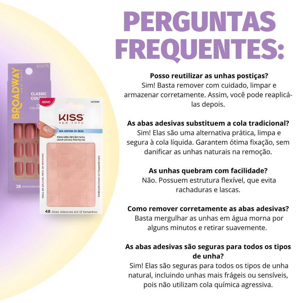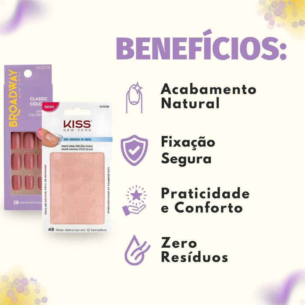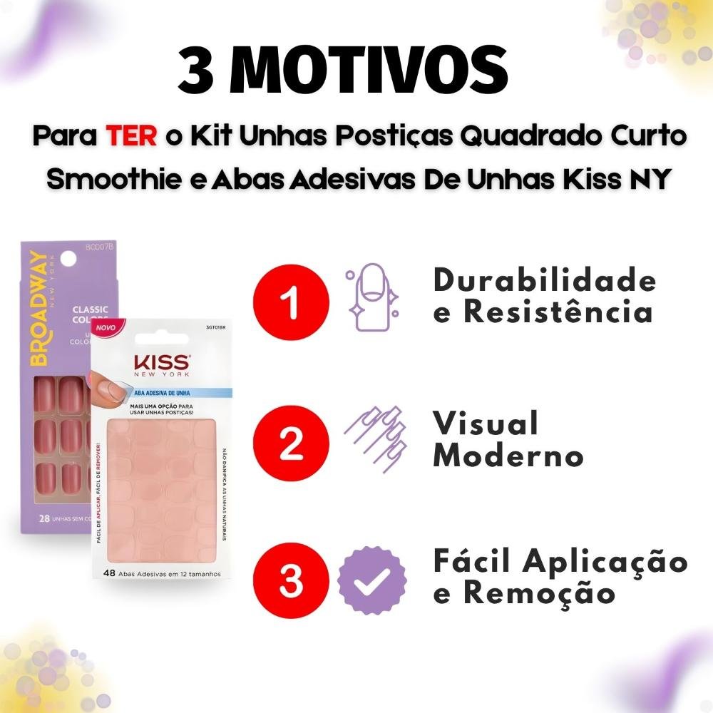 Ref: Kit Kiss New York: Unhas Postiças Quadrado Curto Smoothie e Abas Adesivas Unhas