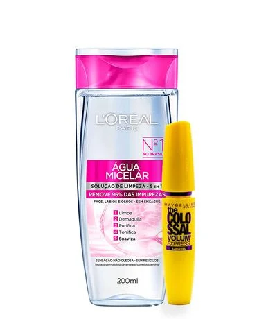 Kit Micelar 200ml + Máscara de Cílios Maybelline The Colossal Volum' Express Lavável Preto