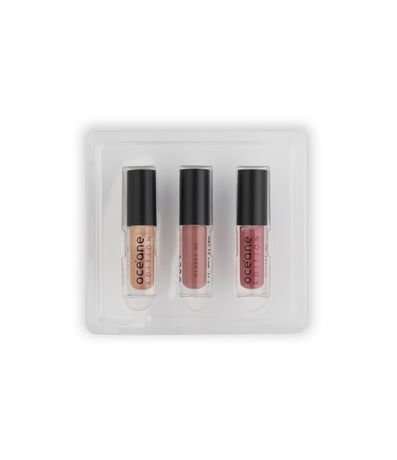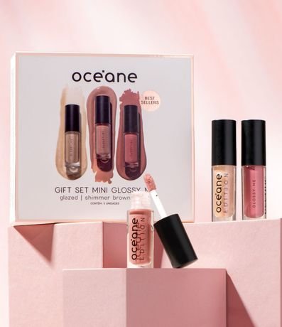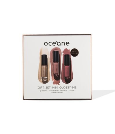 Esse kit é perfeito para você brilhar em qualquer ocasião, com um trio de brilhos labiais que proporcionam hidratação aos lábios e possuem uma fórmula confortável. O tom shimmer brown (nude) e o glazed (transparente) possuem ácido hialurônico e óleo de jojoba, já o tom rose (rosa) formulado com esqualano.