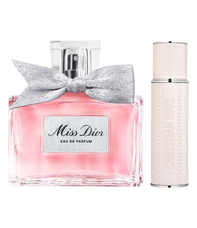 - Um travel spray em edição limitada, 10 ml. Este travel spray rosa irisado combina com as de cores de Miss Dior e apresenta uma faixa estrelada Christian Dior Paris para um toque couture. Recarregável a partir da eau de parfum de 100 ml, este travel spray já preenchido permite levar sempre consigo a fragrância Miss Dior Eau de Parfum.