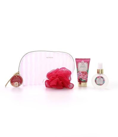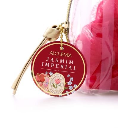 Composição Body Splash Jasmim Imperial Alchemia (português): Água, Álcool Etílico Denaturado, Óleo de Rícino Hidrogenado PEG-40, Caprilato de Sorbitano, Fenoxietanol, Sesquicaprilato de Xilitila, Perfume, Caprililglicol, Salicilato de Benzila, Corante Vermelho Escarlate 125. Composição Esponja: náilon e poliéster.