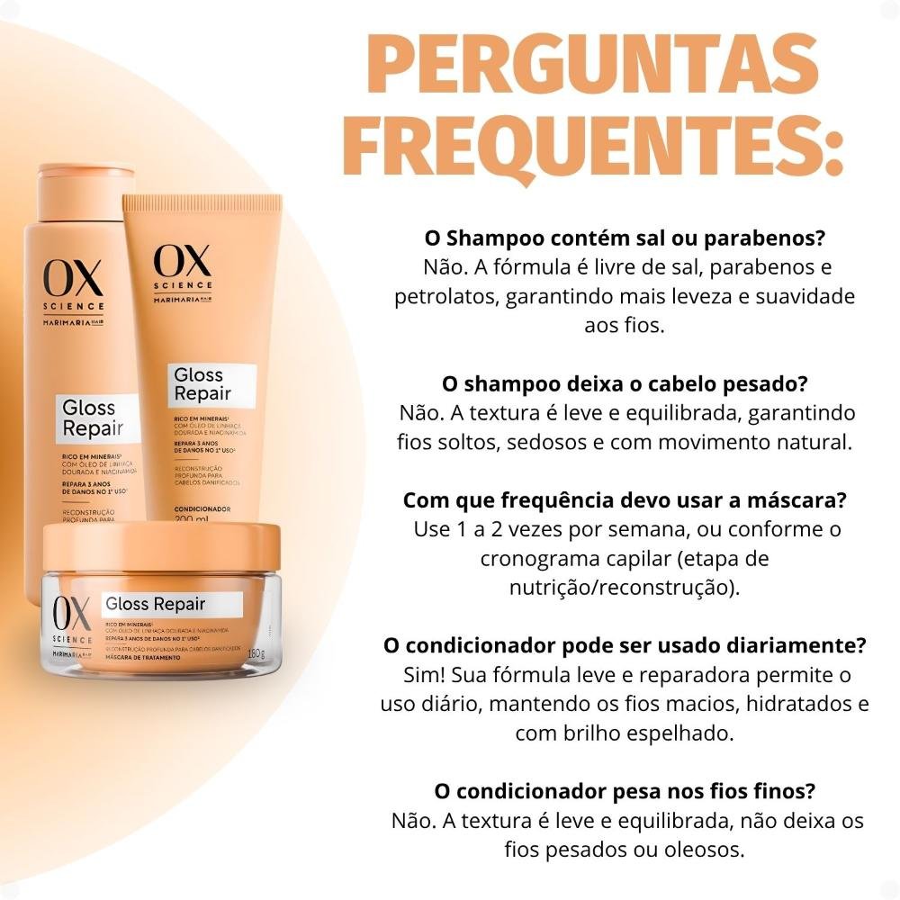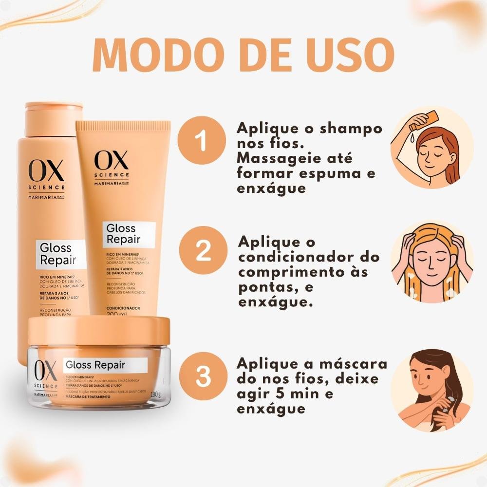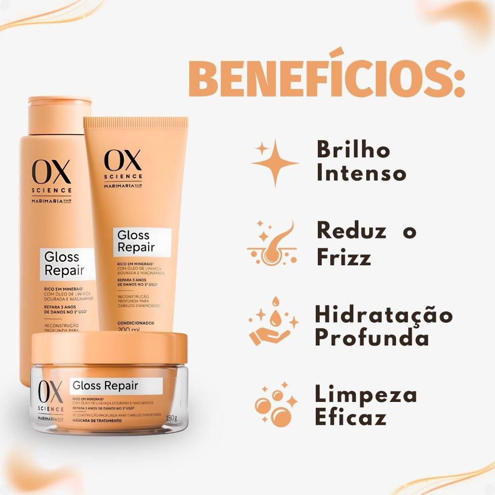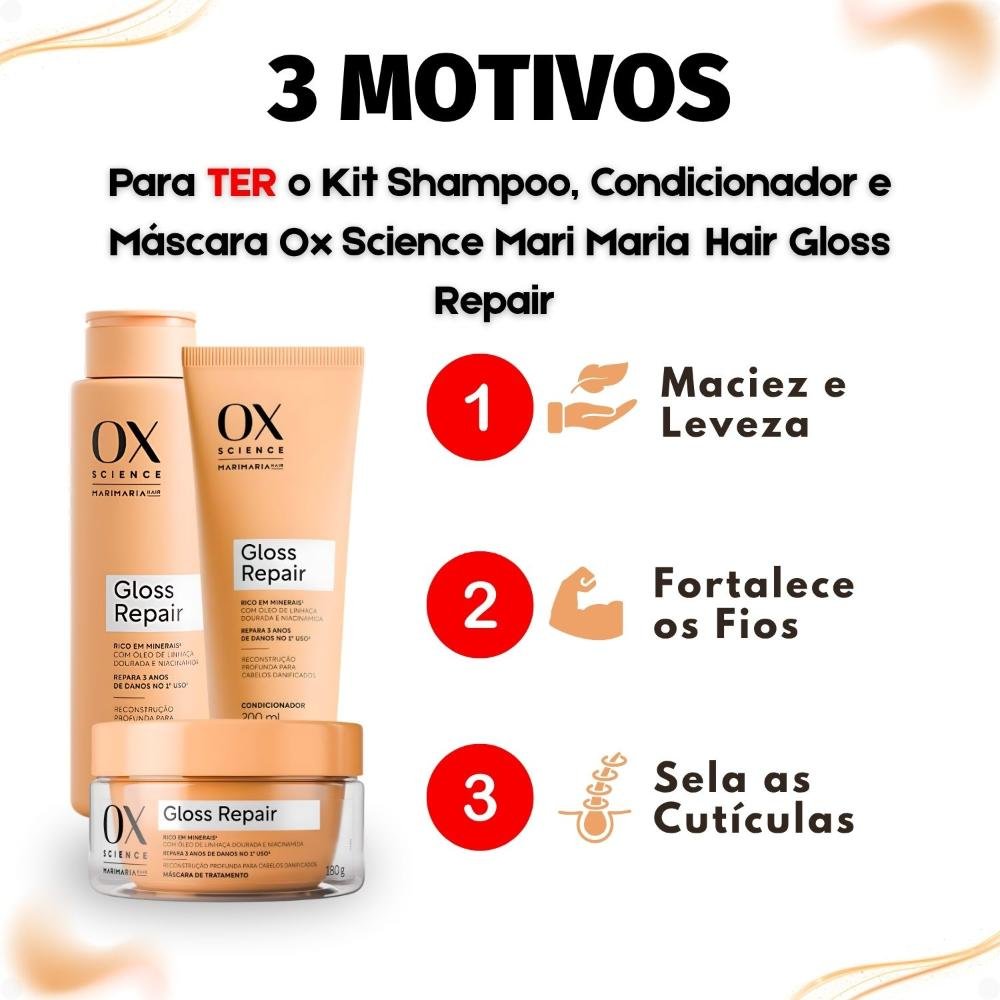 Kit Ox Science Mari Maria Hair Gloss Repair: Shampoo 250ml, Condicionador 200ml e Máscara De Tratamento 180g