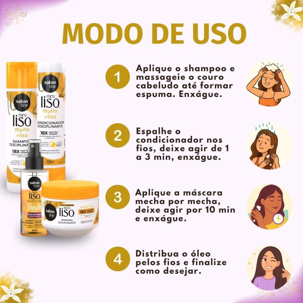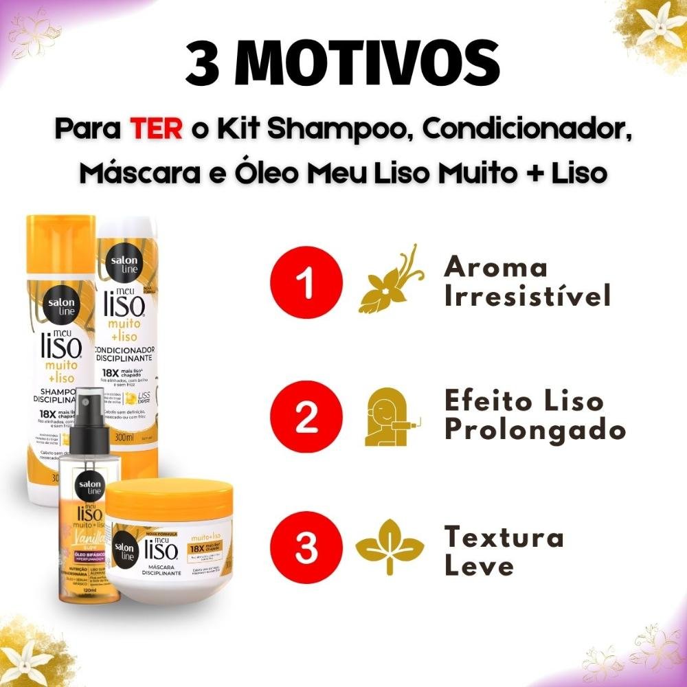 Ref: Kit Salon Line Meu Liso Muito + Liso: Shampoo, Condicionador 300ml, Máscara 300g e Óleo Bifásico 120ml