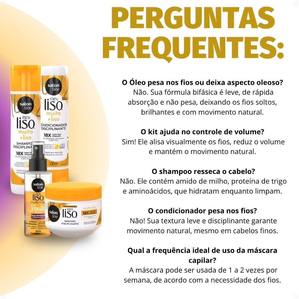 O Kit Salon Line Meu Liso Muito + Liso é ideal para o uso diário de quem possui cabelos lisos e deseja mantê-los sempre saudáveis, hidratados e com um liso impecável. Perfeito para quem busca um tratamento completo para controlar o frizz, aumentar o brilho e garantir o alinhamento dos fios em todas as ocasiões.