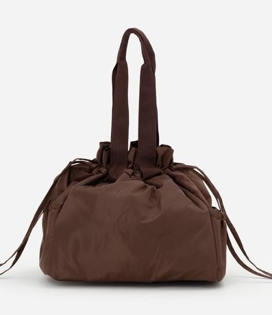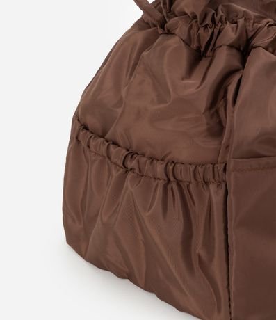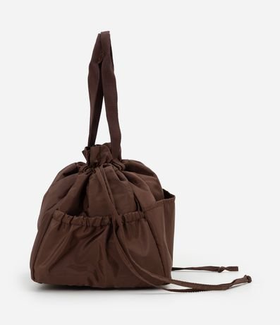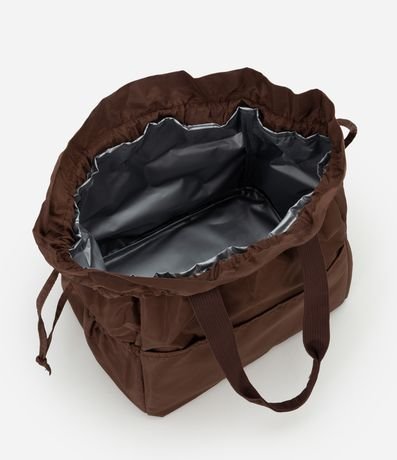 Lancheira feminina em poliéster, com estrutura maleável e acabamento interno térmico. Possui fechamento por cordão ajustável, alças reforçadas para transporte e bolso externo discreto.