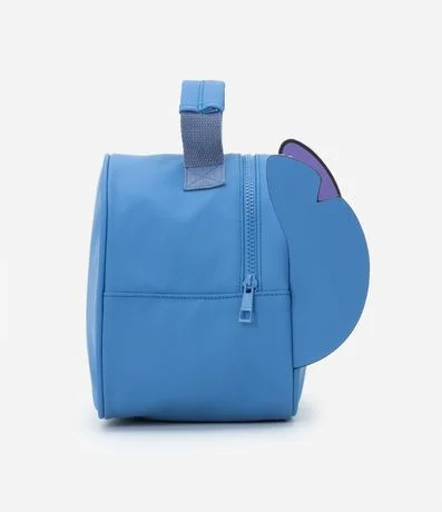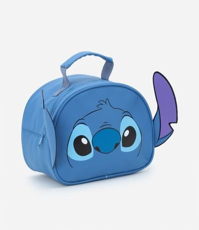 Ref: Lancheira confeccionada em poliéster, de formato meia lua, com estampa do personagem Stitch e detalhe de orelhas 3D. Possui alça de mão e fechamento por zíper.