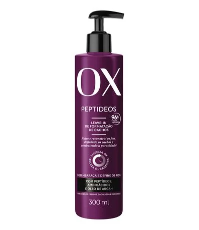 Após lavar e condicionar os cabelos, retire o excesso de água e aplique uma quantidade equivalente a uma moeda por mecha do Leave-in de Formatação de Cachos OX Peptídeos por toda a extensão dos fios. Amasse-os iniciando o movimento das pontas até a raiz para ativar a formação dos cachos. Protetor térmico: utilize nos cabelos úmidos antes do uso de ferramentas de calor. Para melhores resultados, utilize toda a linha OX Peptídeos.