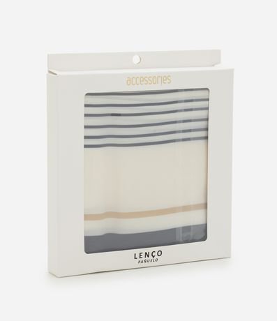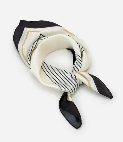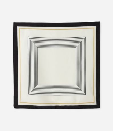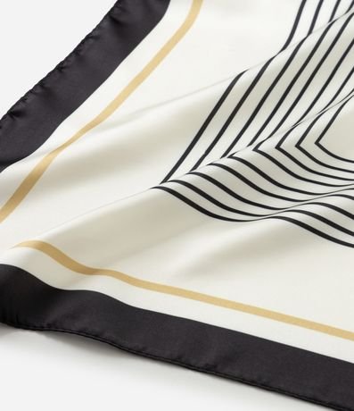 Ref: Lenço feminino em tecido acetinado com formato quadrado. Possui estampa com listras finas formando molduras. O material tem caimento fluido, ideal para amarrações no pescoço, cabelo ou alça de bolsa.