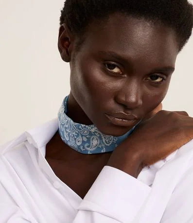 Ref: Lenço de cetim, formato triangular e estampado paisley.