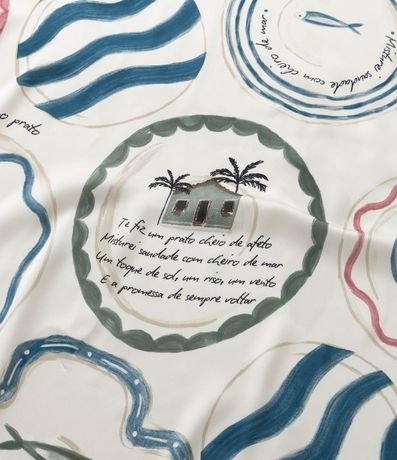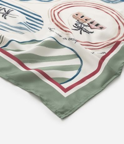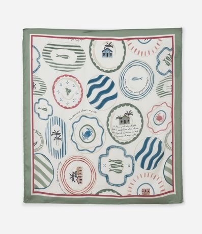 Ref: Lenço confeccionado em cetim com estampa tropical com ícones que remetem a brasilidades.