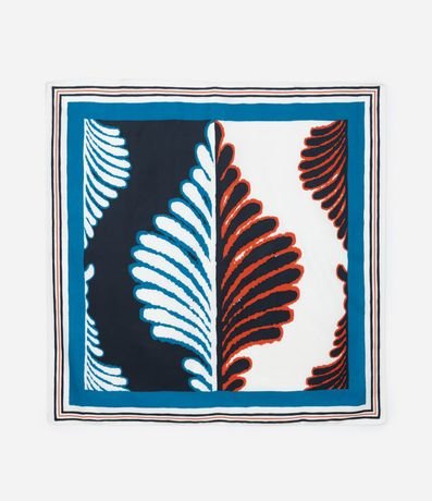 Lenço quadrado feminino, confeccionado em poliamida, com estampa nascente e detalhe na borda.