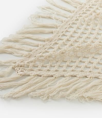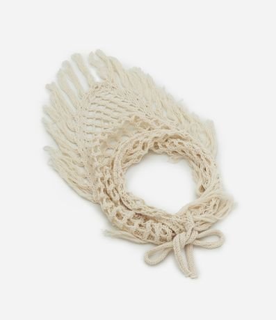 Lenço em tricô, com textura de pontos abertos, franjas e amarração. Ideal para ser usado na cabeça, como bandana, e também cintura.