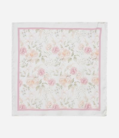 Lenço Quadrado em Cetim com Estampa Floral