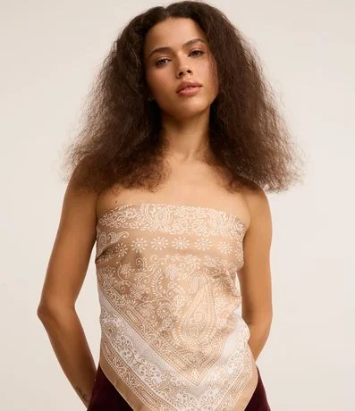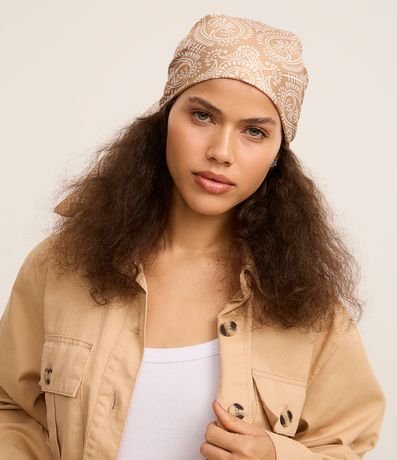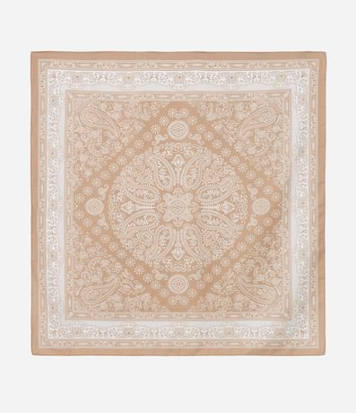 Ref: Lenço quadrado confeccionado em cetim de material mais sustentável. O acessório mede 90 cm x 90 cm e tem estampa paisley.