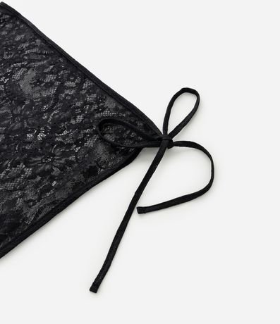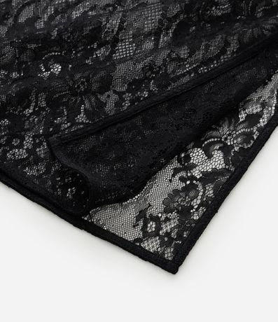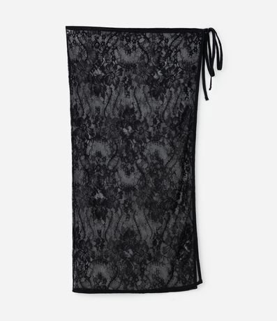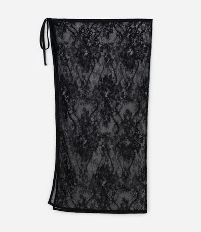 Lenço leve confeccionado em renda, com transparência e textura rendada.