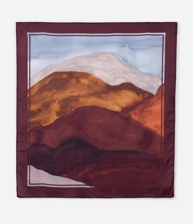 Ref: Lenço retangular confeccionado em cetim, com estampa de montanhas com molduras ilustradas nas bordas. Este produto foi fabricado através de processos mais sustentáveis, sendo ambientalmente mais responsável.