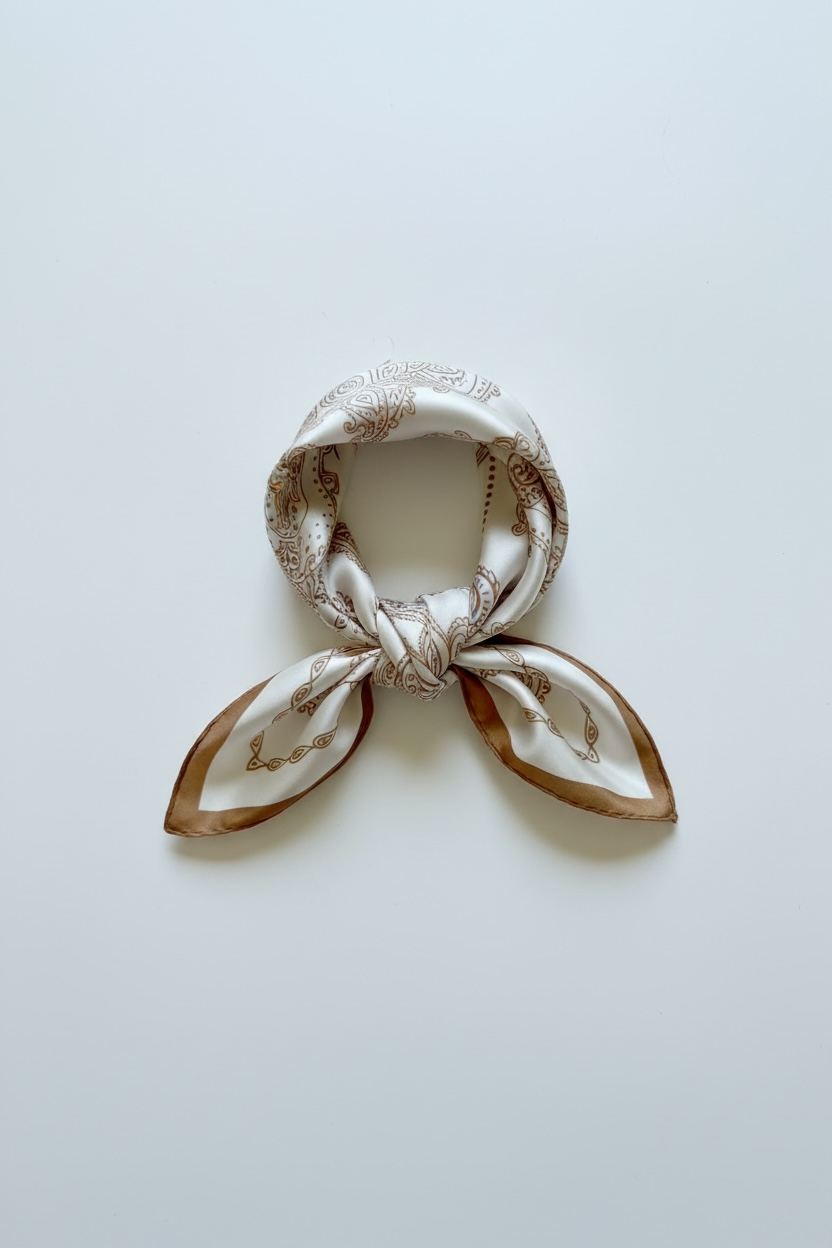 Lenco estampado nas cores branco e nude, em cetim de seda, 70cm X 70cm