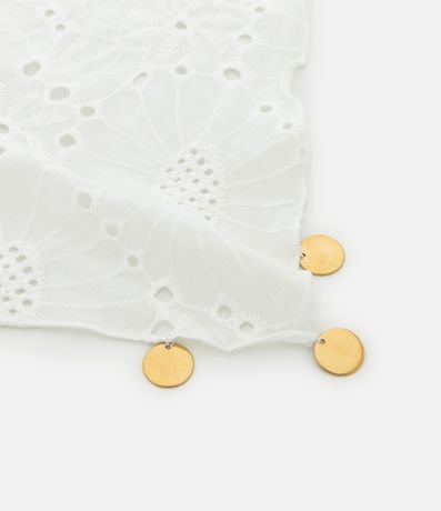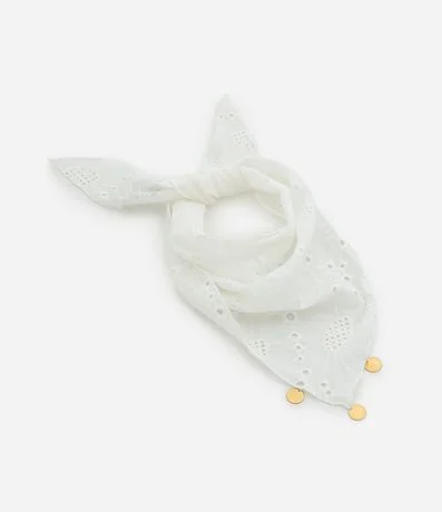 Ref: Lenço triangular confeccionado em laise de algodão BCI e adornado por medalhinhas metálicas.