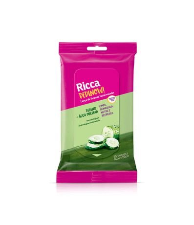 Ref: Lenço de limpeza facial Ricca Pepino + Água Micelar -Indicado para todos os tipos de pele. Limpa, demaquila, nutre e refresca. Dermatologicamente testado.