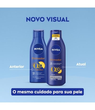 Ref: O NIVEA Firmador Q10 + Vitamina C Loção Hidratante NIVEA Firmador conta com Q10 e Vitamina C na sua fórmula, dois poderosos antioxidantes que melhoram visivelmente a firmeza da pele. Veja +infos!
