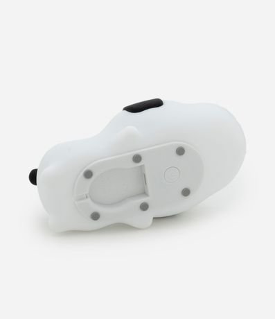 Luminária em silicone com forma fofa de cachorrinho deitado, com detalhes contrastantes, e cabo para ligação.