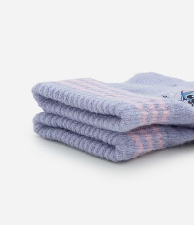 Ref: Luva infantil confeccionada em tricô leve, com modelagem de cinco dedos e tecnologia touch screen nas pontas. Possui estampa localizada dos personagens Stitch e Angel, clássicos da Disney, além de punhos canelados com listras aplicadas para melhor ajuste.