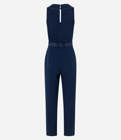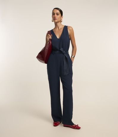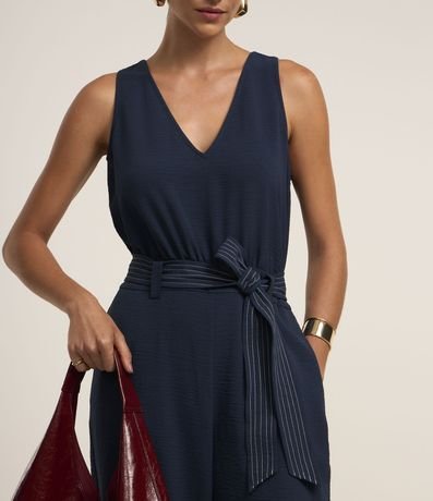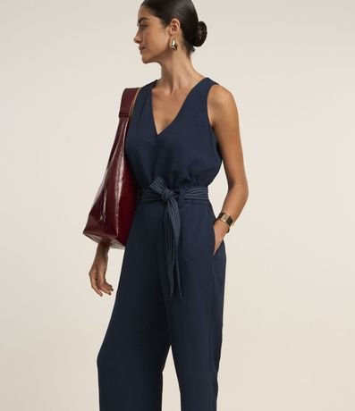 Ref: Macacão airflow decote v com cinto com pesponto contrastante.
