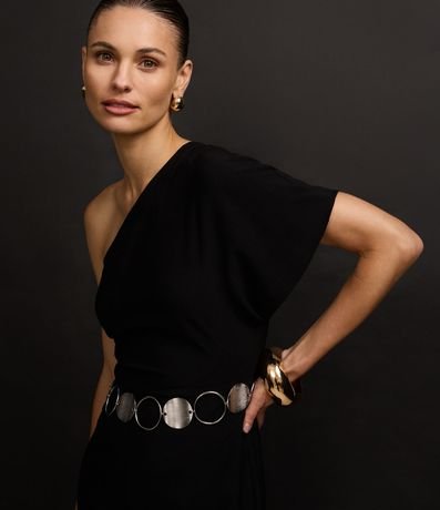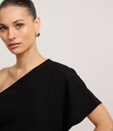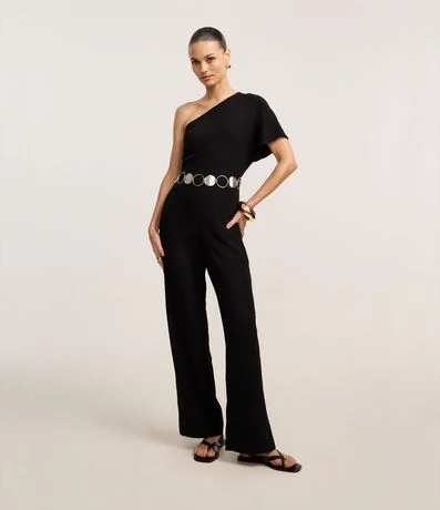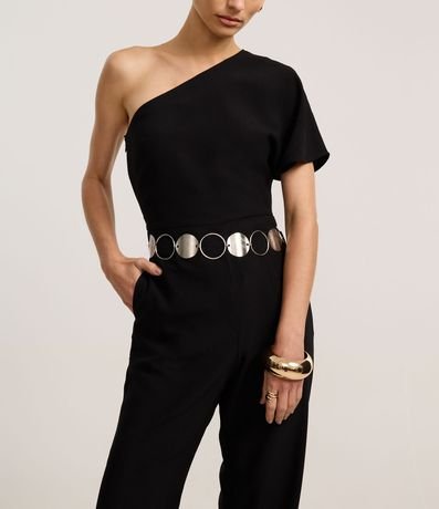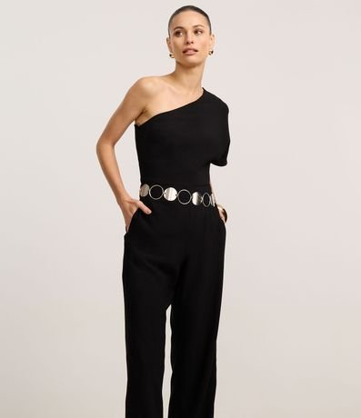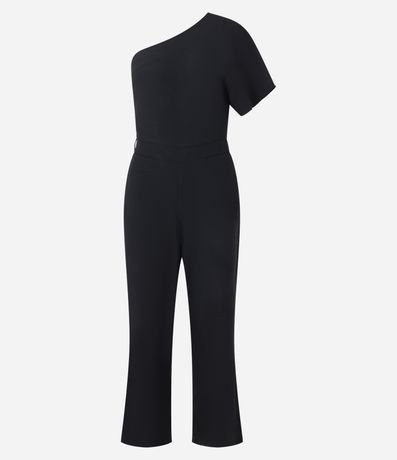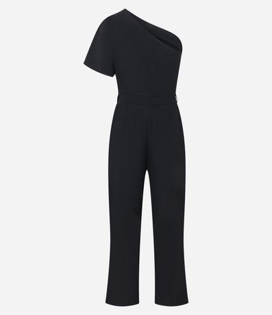 Ref: Macacão de decote ombro só, confeccionada em corte alfaiatado, com manga curta e passantes na cintura. Este produto foi fabricado através de processos mais sustentáveis, sendo ambientalmente mais responsável.